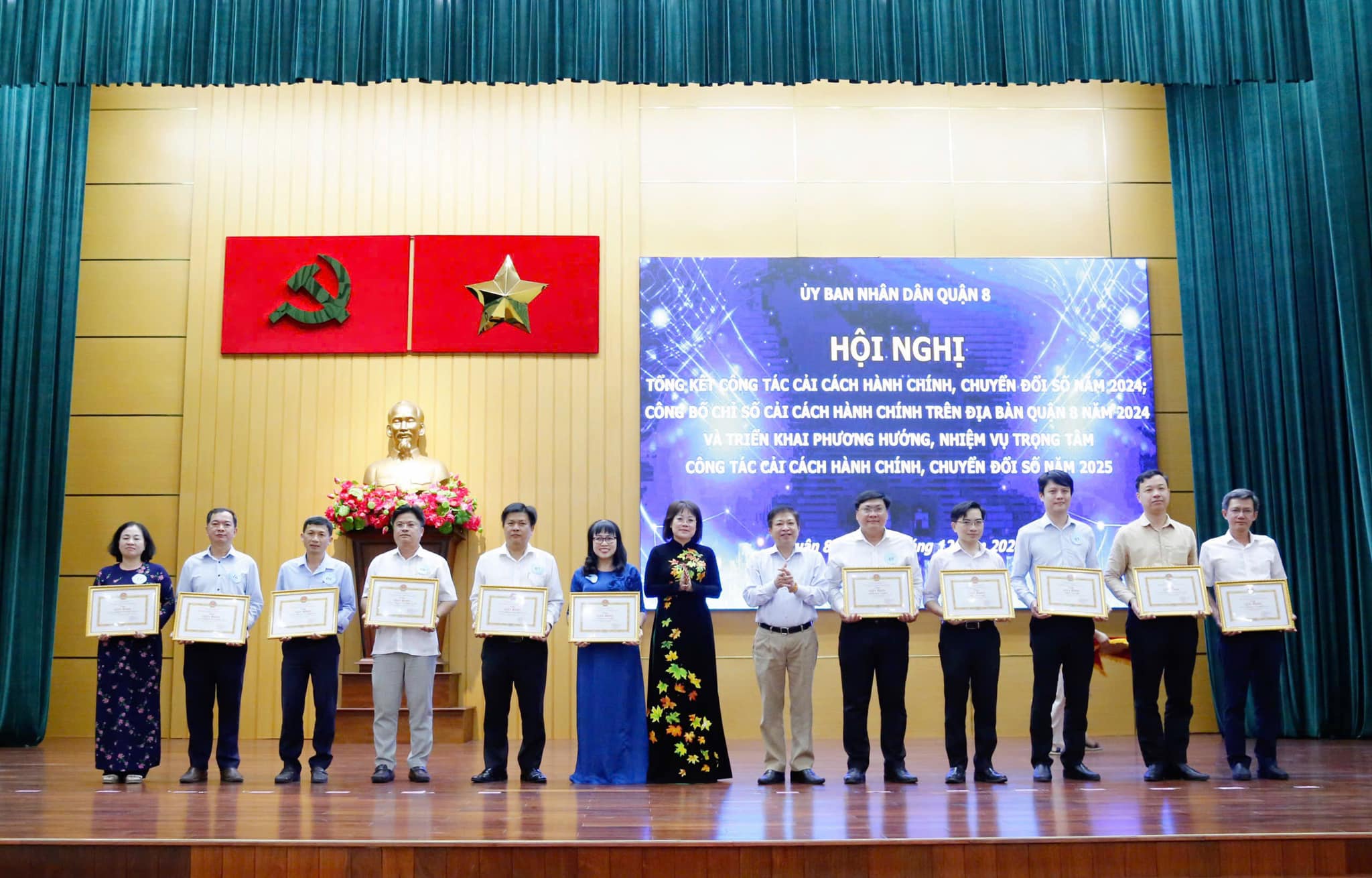 Nhân dịp này, Ủy ban nhân dân Quận 8 đã khen thưởng 11 tập thể và 46 cá nhân có thành tích xuất sắc công tác cải cách hành chính, chuyển đổi số năm 2024.