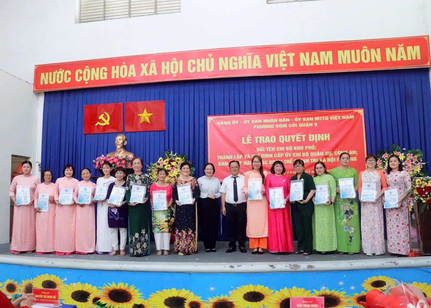 Chiều ngày 13/01, tại trụ sở Mặt trận Tổ quốc và các đoàn thể phường Xóm Củi, Đảng ủy Phường Xóm Củi tổ chức Lễ trao quyết định đổi tên các Chi bộ Khu phố, thành lập và chỉ định Chi ủy Chi bộ Công an và Chi bộ Quân sự Phường Xóm Củi; Quyết định chỉ định Ban Chấp hành các đoàn thể chính trị - xã hội phường.