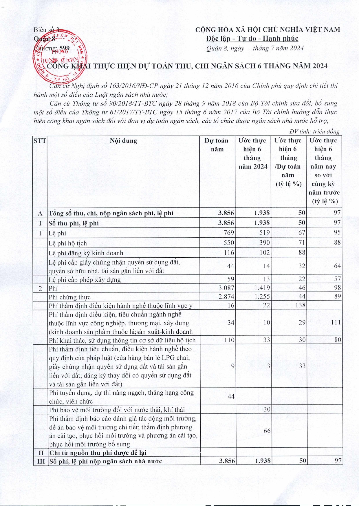 THÔNG BÁO Công khai thông tin chỉ đạo, điều hành của chính quyền Quận 8 liên quan đến doanh nghiệp trong 9 tháng đầu năm 2024 (Số liệu từ ngày 01/10/2024 đến 30/9/2024)
