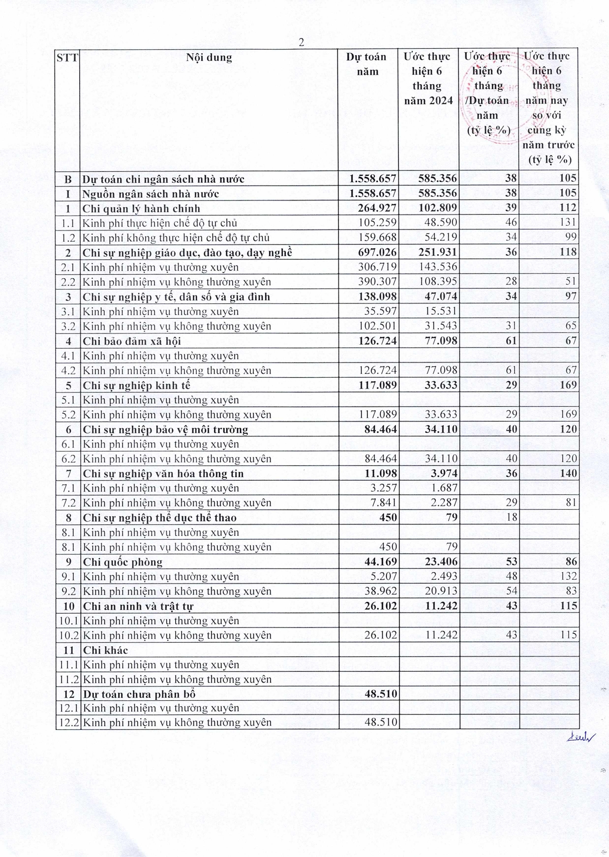 Thông báo về công khai số liệu dự toán thu - chi ngân sách 6 tháng năm 2024