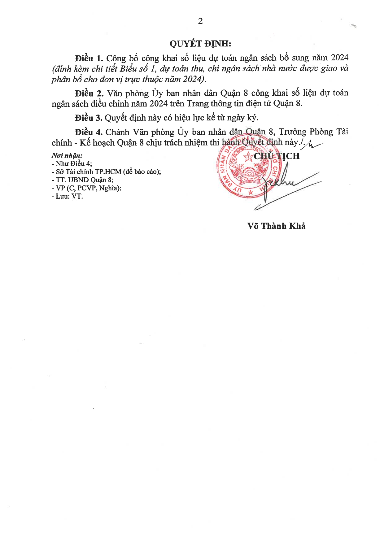 QUYẾT ĐỊNH Về việc công bố công khai số liệu dự toán ngân sách bổ sung năm 2024