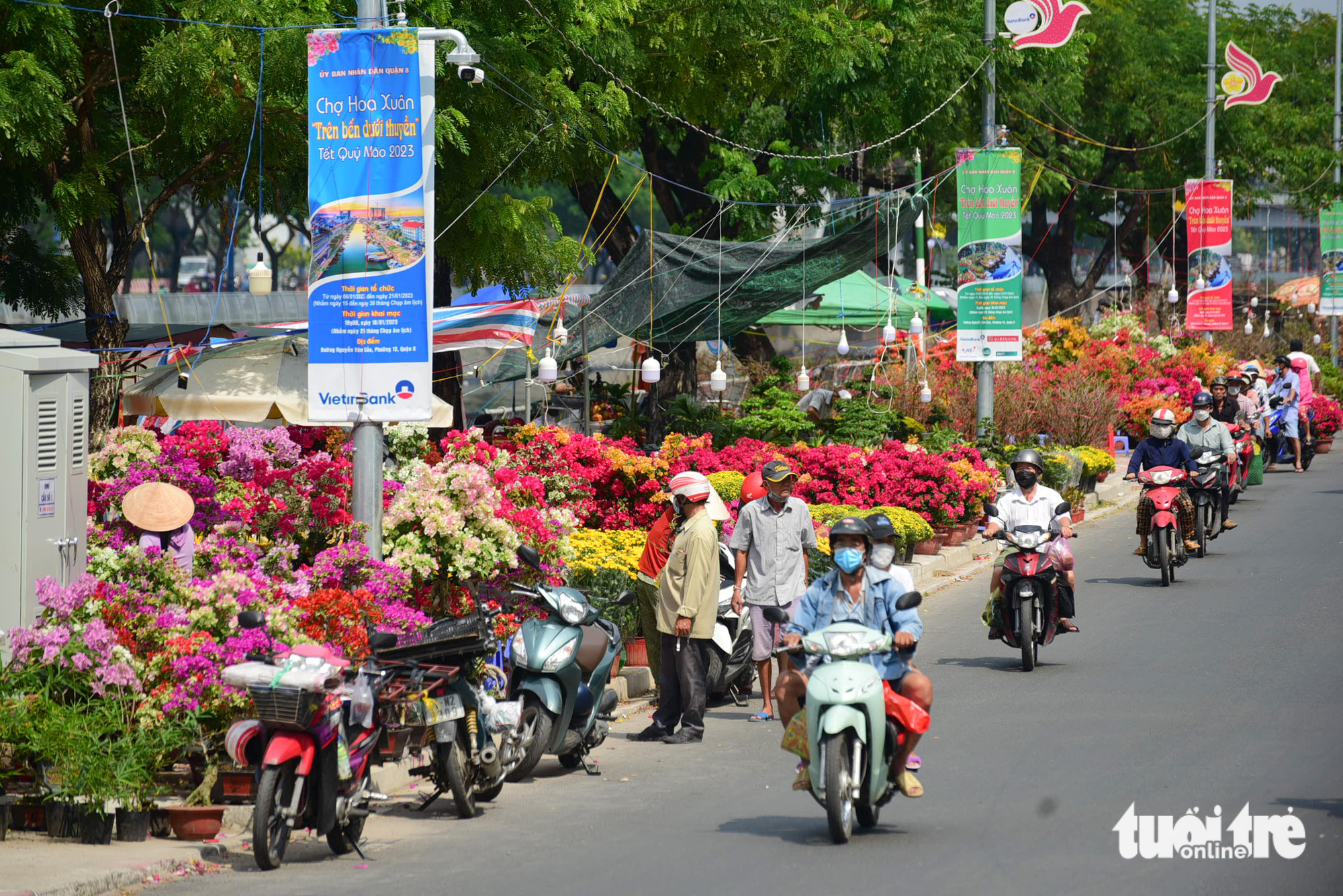 Rộp sắc màu của hoa trên Bến Bình Đông chiều ngày 14-1 - Ảnh: NGỌC PHƯỢNG