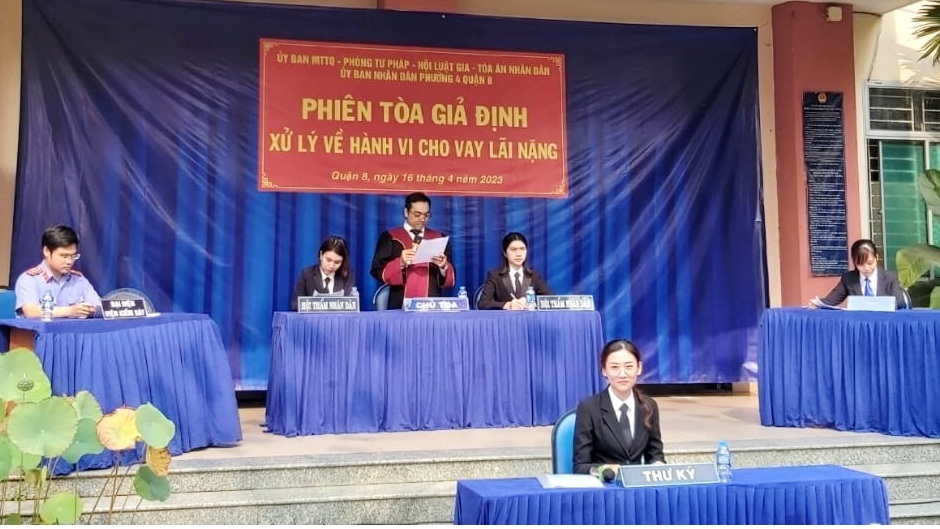 Sáng ngày 16 tháng 4 năm 2022, Phòng Tư pháp Quận 8 phối hợp với Ủy ban Mặt trận Tổ quốc Việt Nam Quận 8, Tòa án nhân dân Quận 8, Hội Luật gia Quận 8 và Ủy ban nhân dân Phường 4 tổ chức phiên tòa giả định “Xử lý hành vi cho vay lãi nặng” trên địa bàn Phường 4.