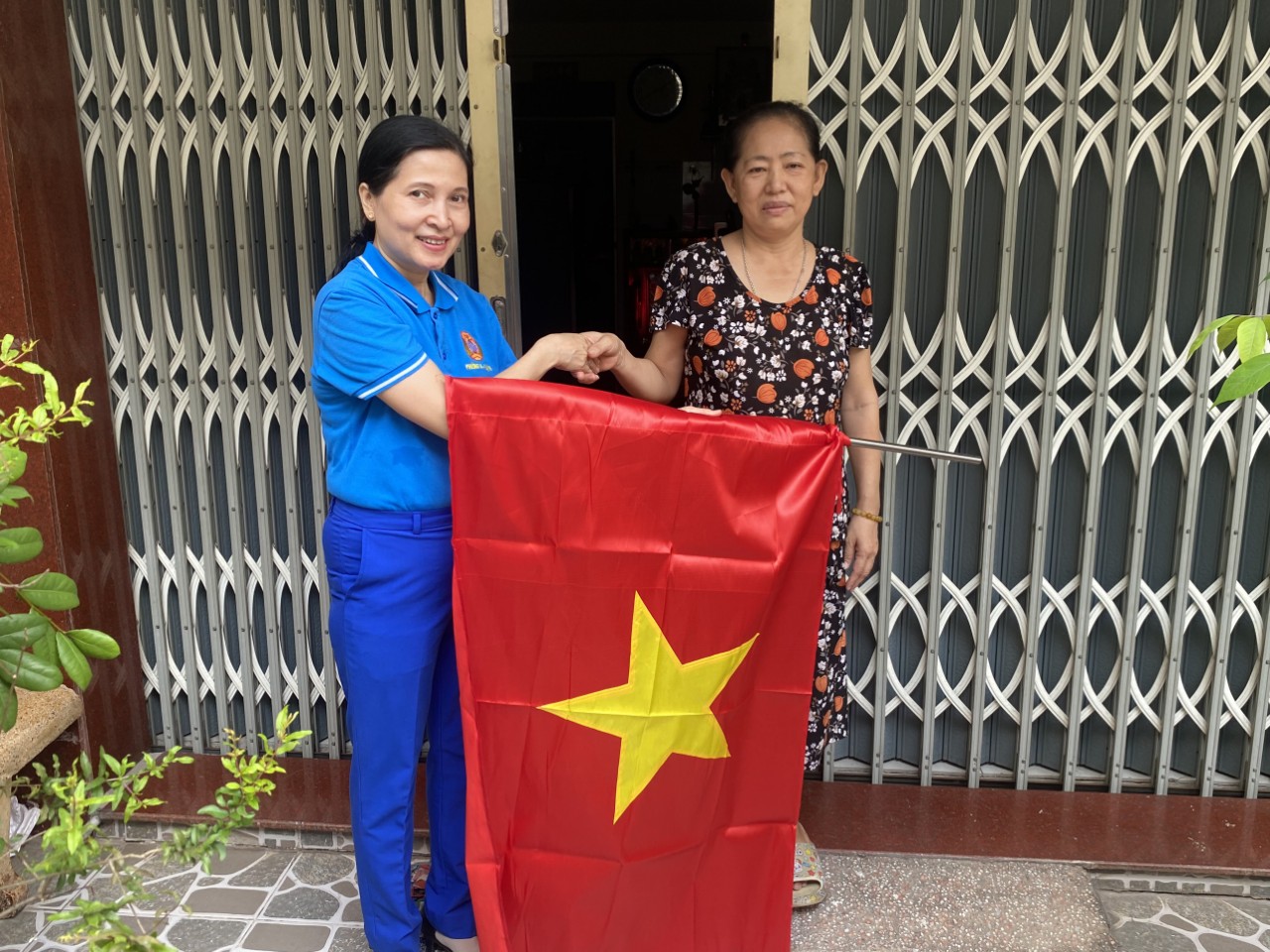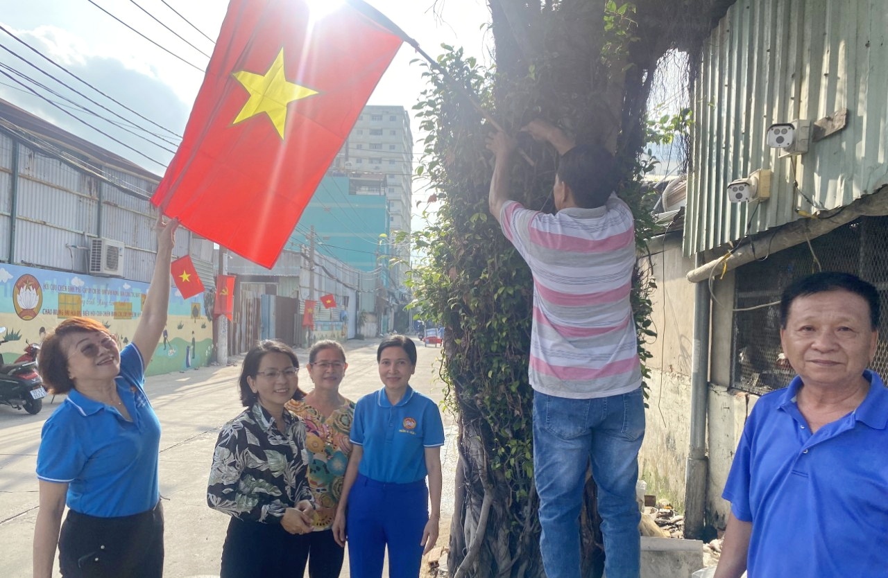Theo đó, Cấp ủy - Ban vận động - Ban Công tác Mặt trận Khu phố 6 vận động mạnh thường quân đang sinh sống tại các tuyến hẻm trên đóng góp kinh phí lắp đặt và trao tặng hơn 300 lá cờ cho các hộ dân, với tổng trị giá 15,7 triệu đồng.