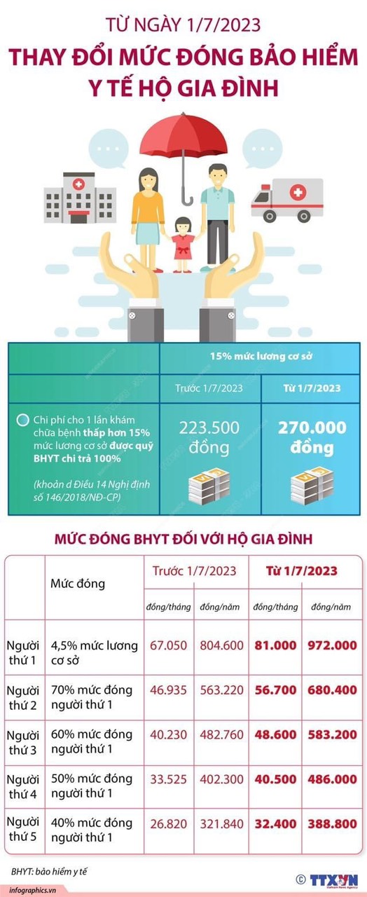 TỪ NGÀY 1/7/2023 THAY ĐỔI MỨC ĐÓNG BẢO HIỂM Y TẾ HỘ GIA ĐÌNH