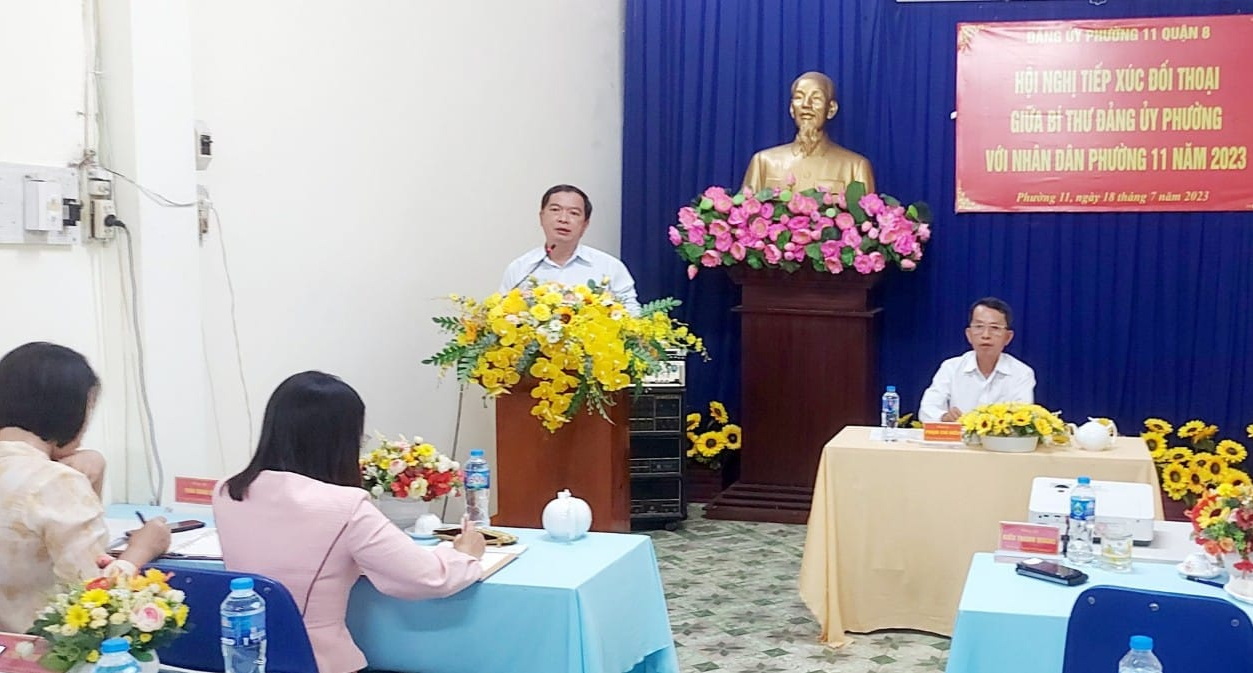 Phát biểu tại hội nghị, đồng chí Phạm Chí Hiển đã khẳng định Đảng bộ và chính quyền Phường 11 luôn quan tâm lãnh đạo hệ thống chính trị giải quyết nhu cầu, bảo vệ lợi ích chính đáng và hợp pháp của tất cả người dân tại địa phương. Đề nghị Chủ tịch UBND phường chỉ đạo các bộ phận tập trung tiếp tục đeo bám giải quyết dứt điểm các vấn đề kiến nghị, thực hiện một số nội dung nhiệm vụ thuộc thẩm quyền giải quyết của đơn vị để đáp ứng tâm tư, nguyện vọng của Nhân dân trên địa bàn phường trong thời gian sớm nhất. Bên cạnh đó, đề nghị UBMTTQVN phường tiếp tục giám sát việc giải quyết các kiến nghị nêu trên và có báo cáo cụ thể đối với ngành dọc cấp trên và Đảng ủy phường. Riêng các nội dung phản ánh thuộc thẩm quyền cấp trên, phường sẽ tiếp tục kiến nghị các cơ quan chức năng liên quan sớm có thông tin phản hồi đến người dân trong thời gian tới.