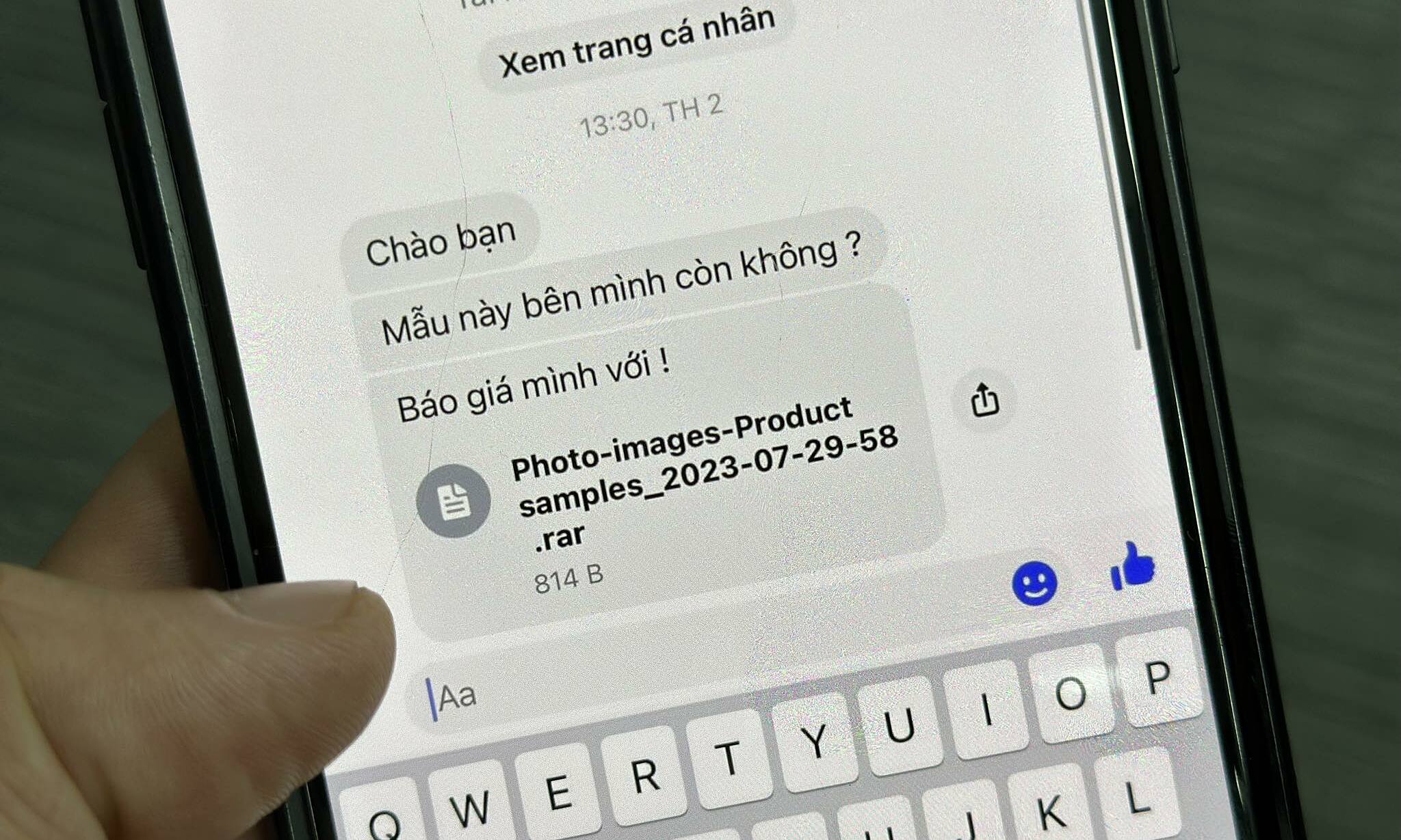 Cuối tháng 8, anh Nhân, chủ một cửa hàng ở Hà Nội, nhận được tin nhắn hỏi về dịch vụ từ một vị khách lạ. Người này chưa từng mua hàng, sau vài câu chào hỏi đã đề nghị hợp tác và gửi cho anh một tệp chứa các mặt hàng cần báo giá. "Chỉ là một bảng danh sách, nhưng không hiểu sao khách không gửi trực tiếp mà lại phải nén bằng file rar", anh Nhân kể.