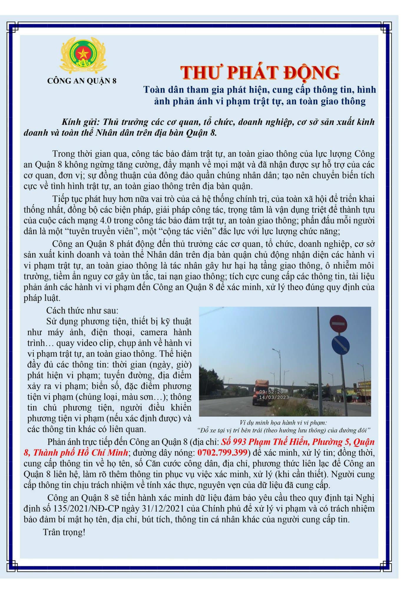 Thư phát động toàn dân tham gia phát hiện, cung cấp thông tin, hình ảnh phản ánh vi phạm trật tự, an toàn giao thông