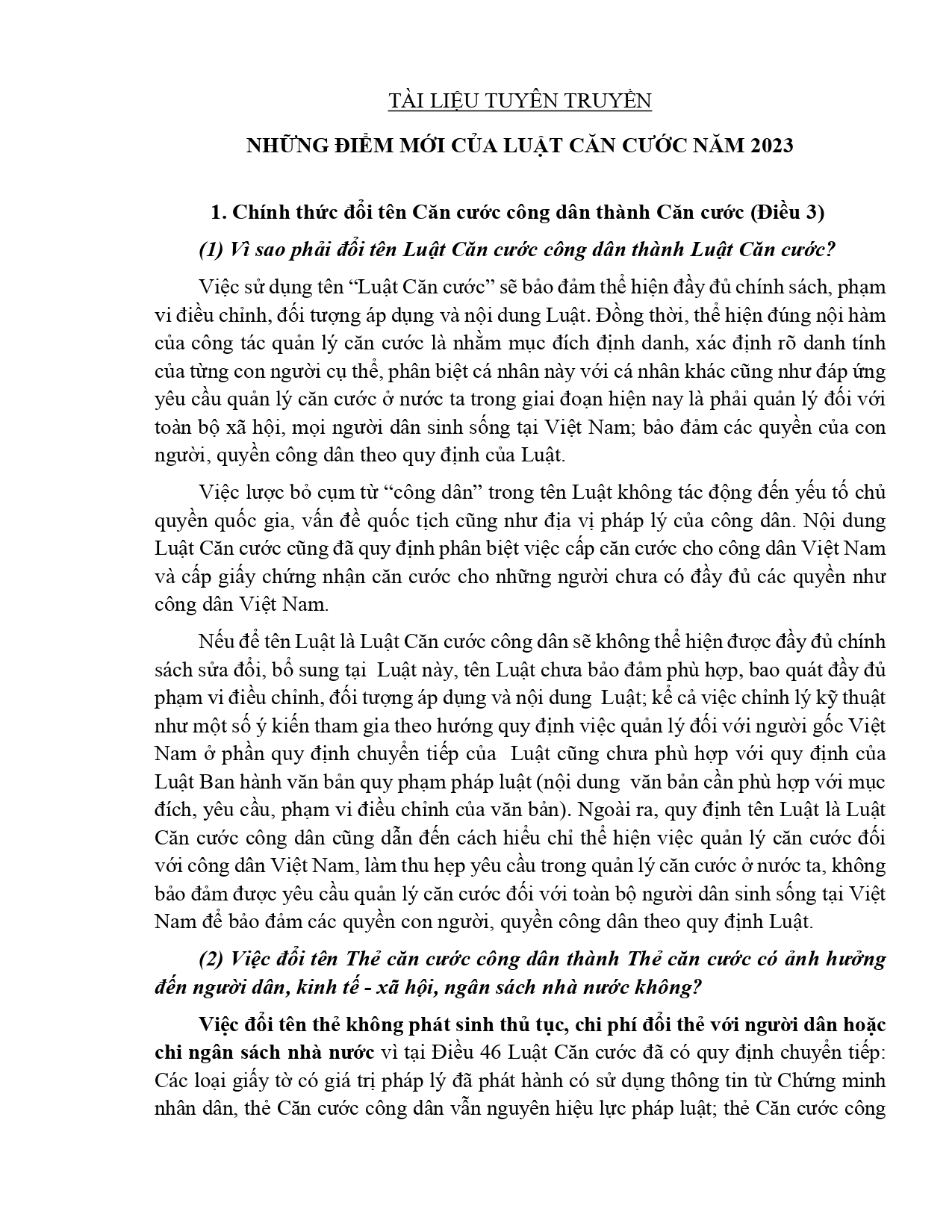 Tài liệu tuyên truyền Luật Căn cước năm 2023