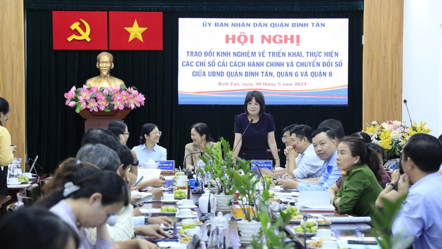 Ngày 30 tháng 5 năm 2024, Đoàn công tác của Ủy ban nhân dân Quận 8 do đồng chí Nguyễn Thị Thu Hoa, Ủy viên Ban Thường vụ, Phó Chủ tịch Ủy ban nhân dân Quận 8 làm Trưởng đoàn đã đến thăm, làm việc, nghiên cứu, trao đổi và học tập kinh nghiệm về công tác cải cách hành chính, chuyển đổi số tại Ủy ban nhân dân quận Bình Tân. Tiếp và làm việc với Đoàn công tác có đồng chí Phạm Thị Ngọc Diệu, Ủy viên Ban Thường vụ Quận ủy, Phó Chủ tịch UBND Quận Bình Tân cùng lãnh đạo các phòng, ban, ngành quận Bình Tân.