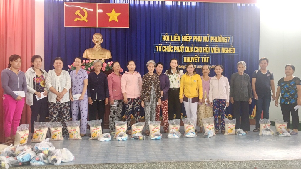 Sáng ngày 23 tháng 7 năm 2018 tại Hội trường Nhà văn hóa phường 7, Hội liên hiệp phụ nữ phường 7 tổ chức trao tặng quà cho hội viên gia đình chính sách, hội viên nghèo có hoàn cảnh khó khăn, đơn thân, khuyết tật trên địa bàn phường. Tại buổi trao tặng gạo có Bà Lê Thị Thu Hằng – Chủ tịch Hội liên hiệp phụ nữ phường 7 cùng 100 người dân được nhận quà, 20 em học sinh.