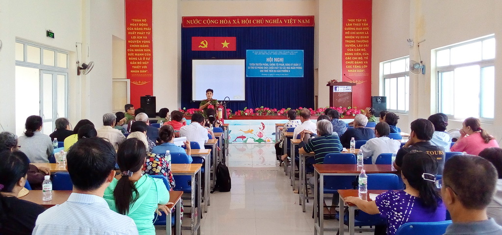 Sáng ngày 21/6/2019, tại Hội trường UBND Phường 6, Ủy ban nhân dân Phường 6, Ủy ban MTTQ Việt Nam Phường 6, Hội Liên hiệp Phụ nữ Phường 6 và Công an Phường 6 phối hợp tổ chức Hội nghị tuyên truyền phòng chống tội phạm, đăng ký quản lý cư trú và phòng cháy, chữa cháy cho các hộ dân ngăn phòng cho thuê trên địa bàn phường.