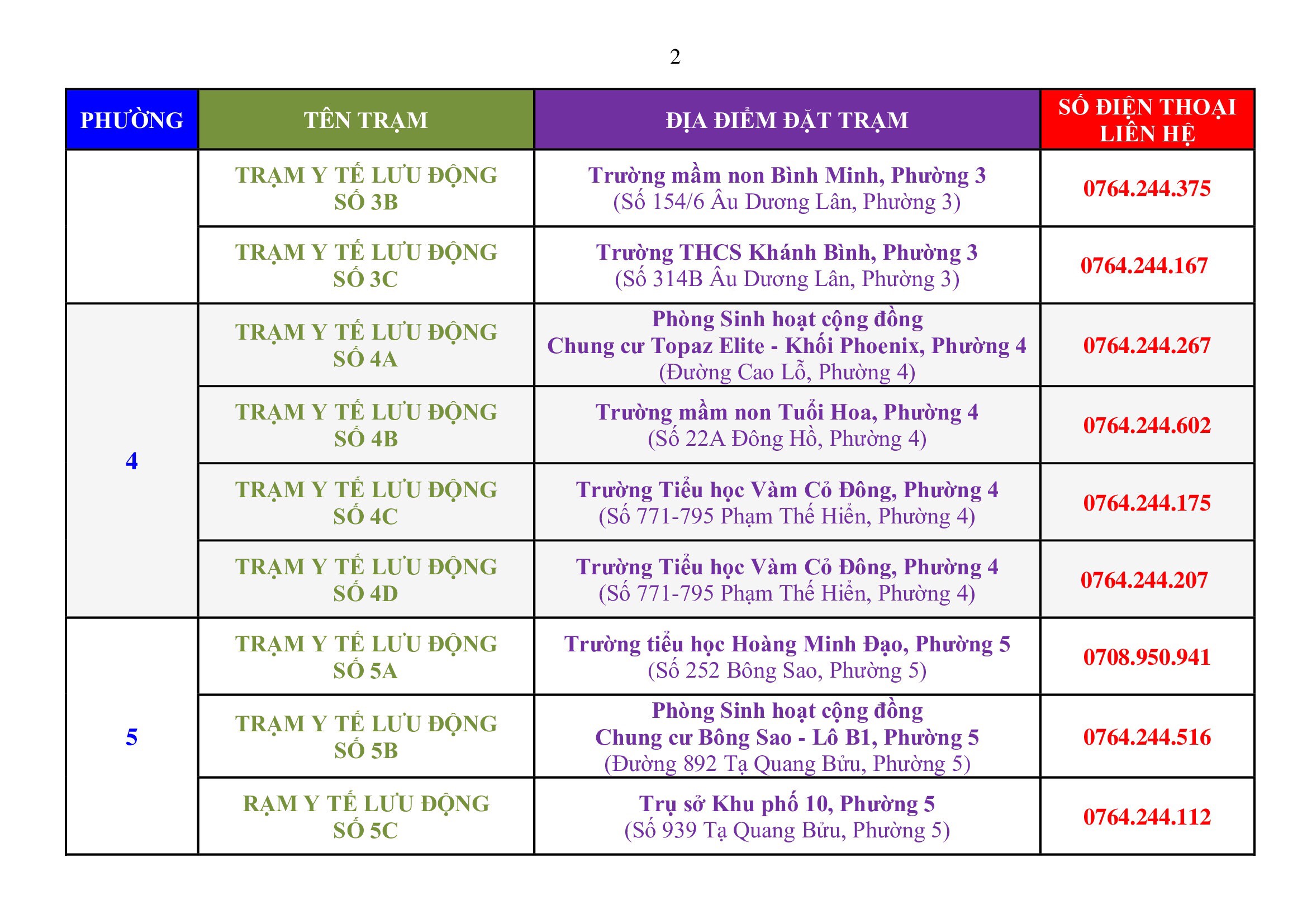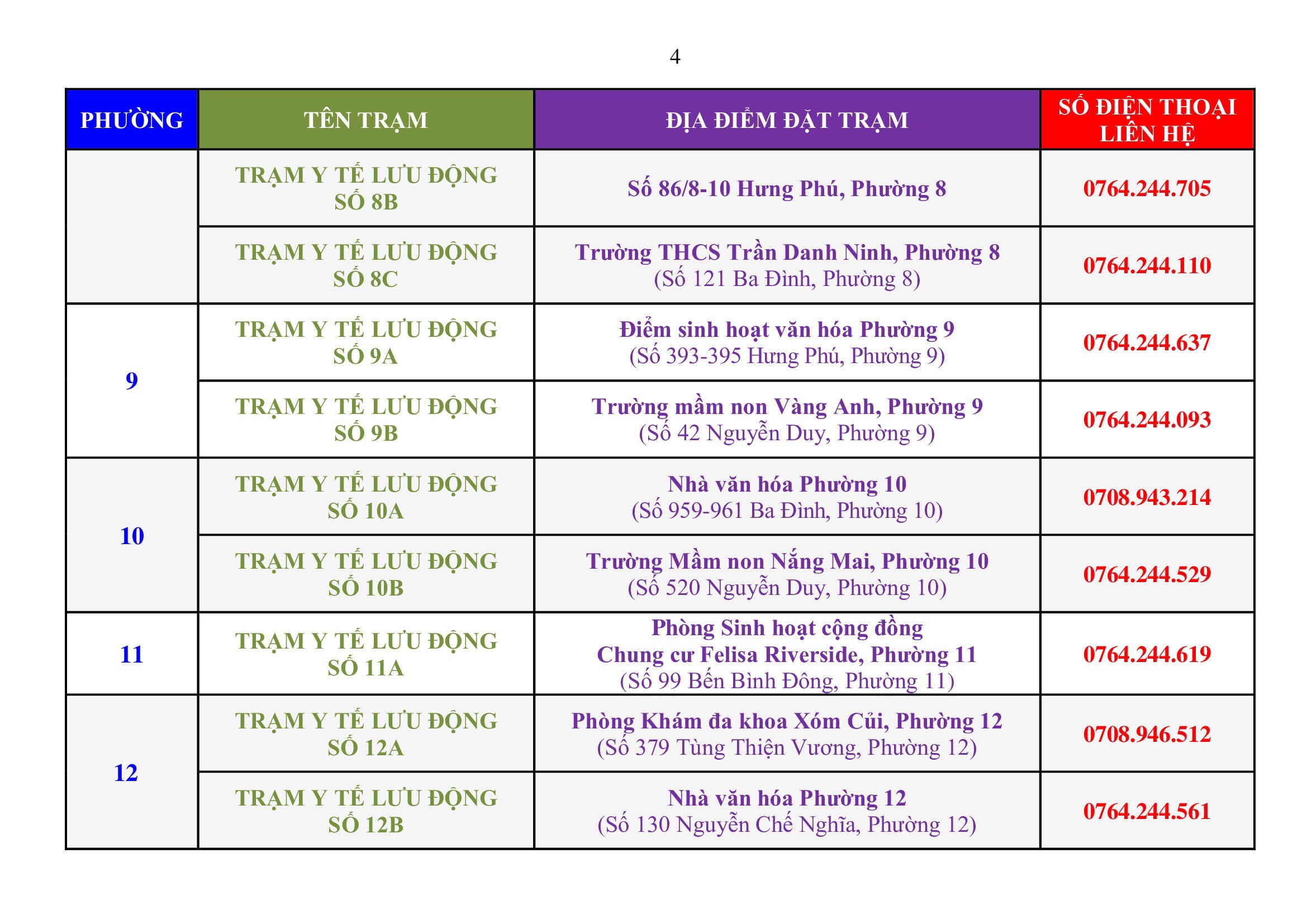 HOTLINE 50 TRẠM Y TẾ LƯU ĐỘNG TRÊN ĐỊA BÀN QUẬN 8