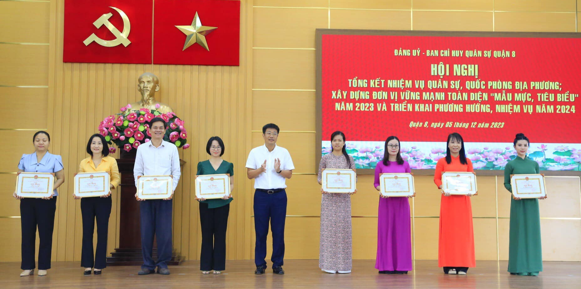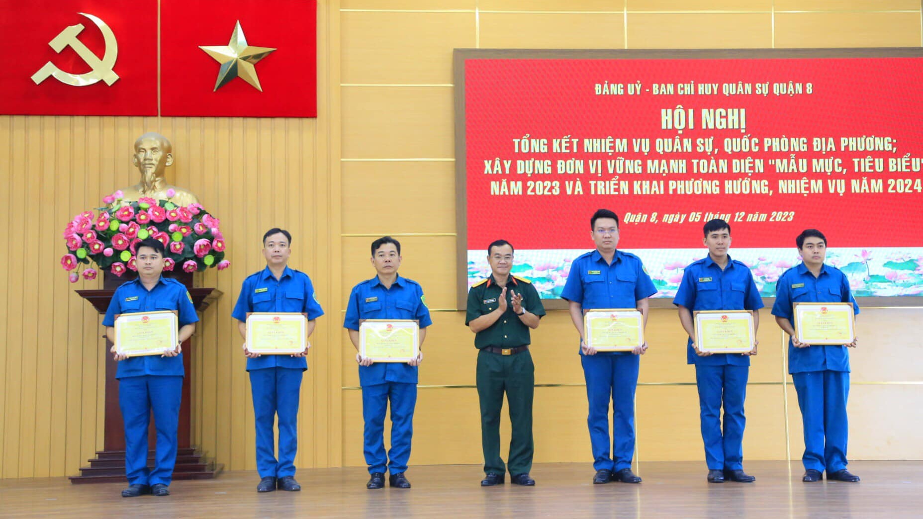 Dịp này, UBND Quận 8 trao khen thưởng cho 41 tập thể, 39 cá nhân và Ban Chỉ huy Quân sự quận khen thưởng 32 cá nhân có thành tích xuất sắc trong Phong trào Thi đua Quyết thắng năm 2023. Trao 02 giải Nhất, 02 giải Nhì, 02 giải Ba trong Hội thi "Xây dựng và quản lý doanh trại chính quy, xanh, sạch, đẹp".