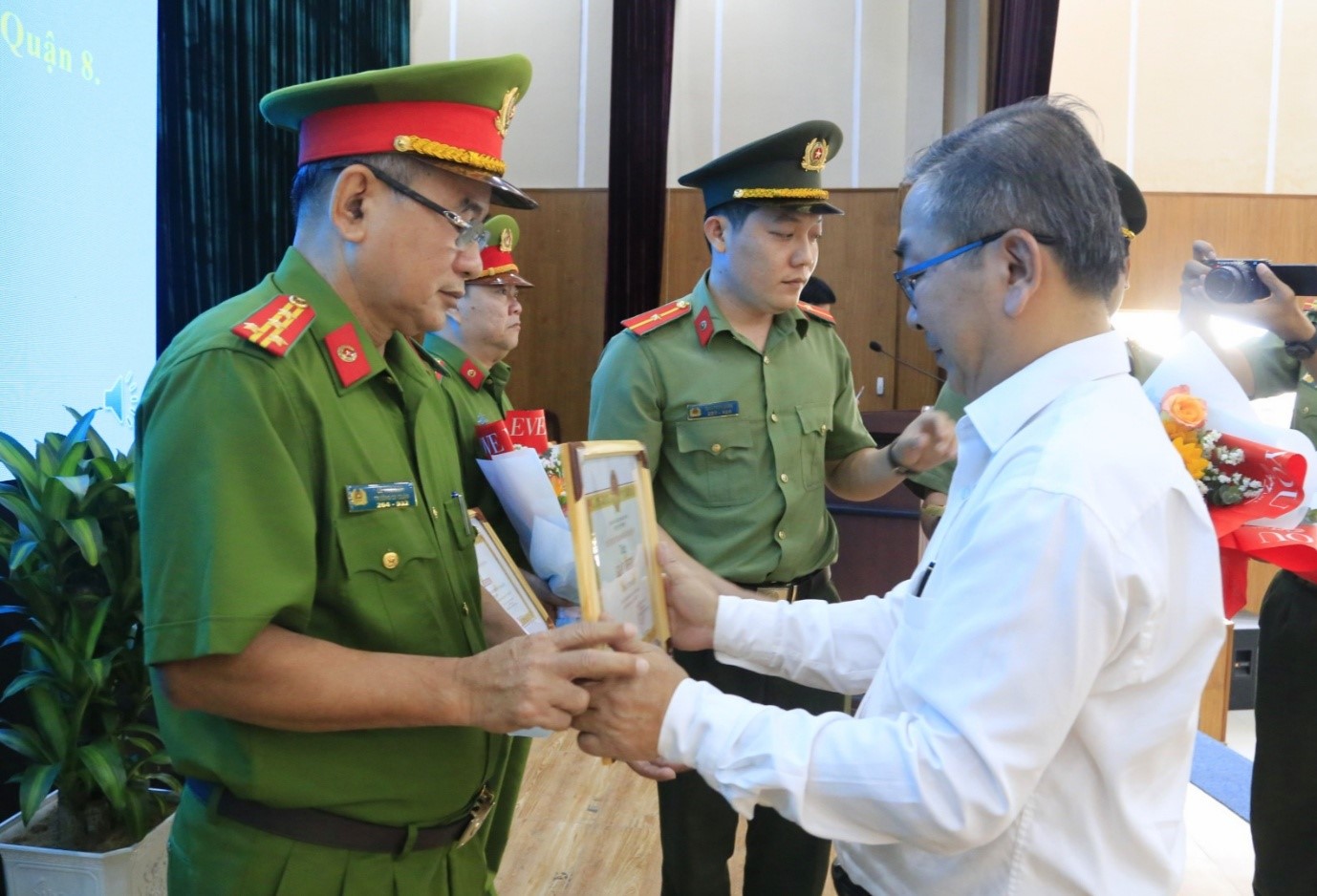 Tham dự Hội nghị có đại diện Công an TP.HCM cùng các đồng chí: Võ Ngọc Quốc Thuận, Thành ủy viên, Bí thư Quận ủy Quận 8; Trần Thanh Tùng, Phó Bí thư Quận ủy, Chủ tịch Ủy ban nhân dân quận; Trần Thanh Hà, Ủy viên Ban Thường vụ, Chủ tịch Ủy ban Mặt trận Tổ quốc Việt Nam quận; Đại tá Lê Văn Bích, Ủy viên Ban Thường vụ, Trưởng Công an quận.