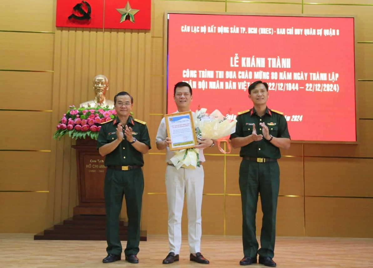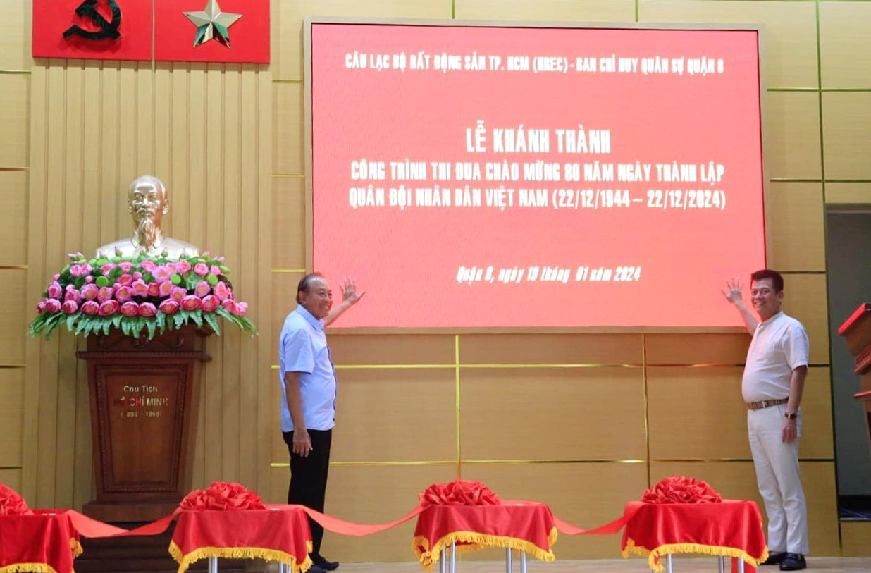 Chiều 19/01; Đảng uỷ, Ban Chỉ huy Quân sự (CHQS) Quận 8 phối hợp với Câu lạc bộ Bất động sản TP.HCM (HREC) tổ chức Lễ khánh thành “Hội trường chính quy, hiện đại” chào mừng kỷ niệm 80 năm Ngày thành lập Quân đội nhân dân Việt Nam (22/12/1944 - 22/12/2024).