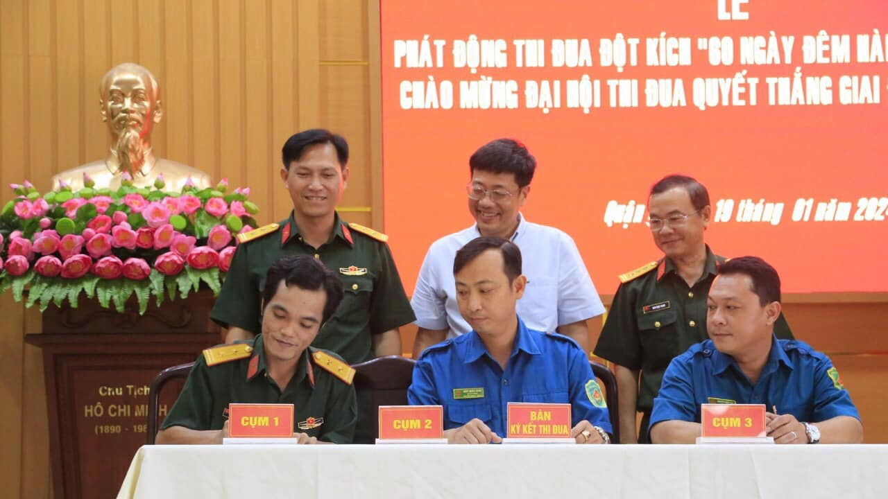 Tại lễ phát động, Thượng tá Đinh Ngọc Thanh yêu cầu cán bộ, chiến sĩ Ban CHQS quận, phường, các đơn vị tự vệ tiếp tục tổ chức tuyên truyền sâu rộng, giáo dục cho 100% cán bộ, chiến sĩ có nhận thức tốt về ý nghĩa, tầm quan trọng của Đại hội thi đua Quyết thắng LLVT quận giai đoạn 2019 - 2024; nêu cao tinh thần trách nhiệm chủ động phối hợp làm tốt công tác chuẩn bị, tổ chức thực hiện tốt các hoạt động chào mừng, phục vụ Đại hội thi đua quyết thắng LLVT quận giai đoạn 2019 – 2024 thật sự đổi mới, chu đáo, trang trọng, thiết thực, hiệu quả, an toàn, tiết kiệm và hoàn thành các chỉ tiêu nhiệm vụ quân sự, quốc phòng Quý I/2024.