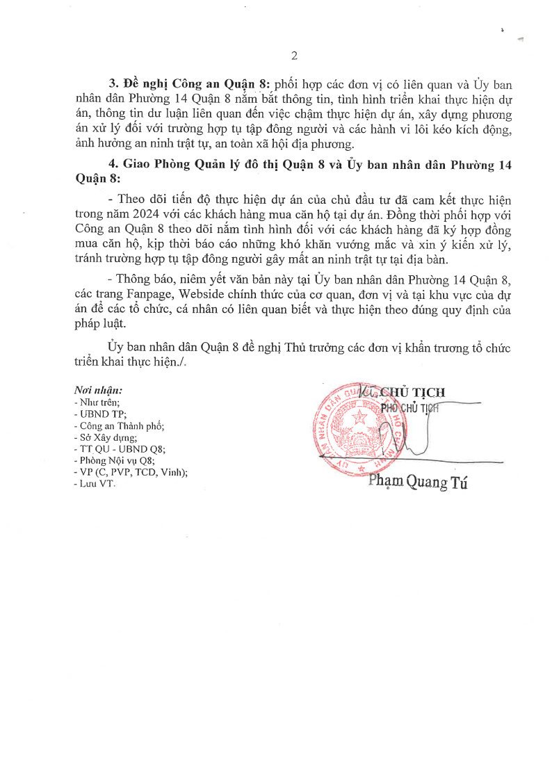 Về việc chậm trễ bàn giao căn hộ tại dự án Chung cư cao tầng Aurora (địa chỉ số 277 đường Bến Bình Đông Phường 14, Quận 8) do Công ty TNHH Đầu tư Bất Động Sản Bình Đông làm Chủ đầu tư