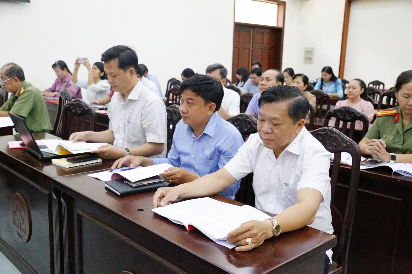 Tham dự hội nghị có các đồng chí: Đỗ Quyết Thắng, Phó Trưởng Phòng Báo chí - Xuất bản, Ban Tuyên giáo Thành ủy; Đỗ Hữu Trí, Phó Bí thư Thường trực Quận ủy; Nguyễn Thanh Sang, Ủy viên Ban Thường vụ, Phó Chủ tịch Thường trực Ủy ban nhân dân quận; Phạm Ngọc Muôn, Ủy viên Ban Thường vụ, Trưởng Ban Tuyên giáo Quận ủy.
