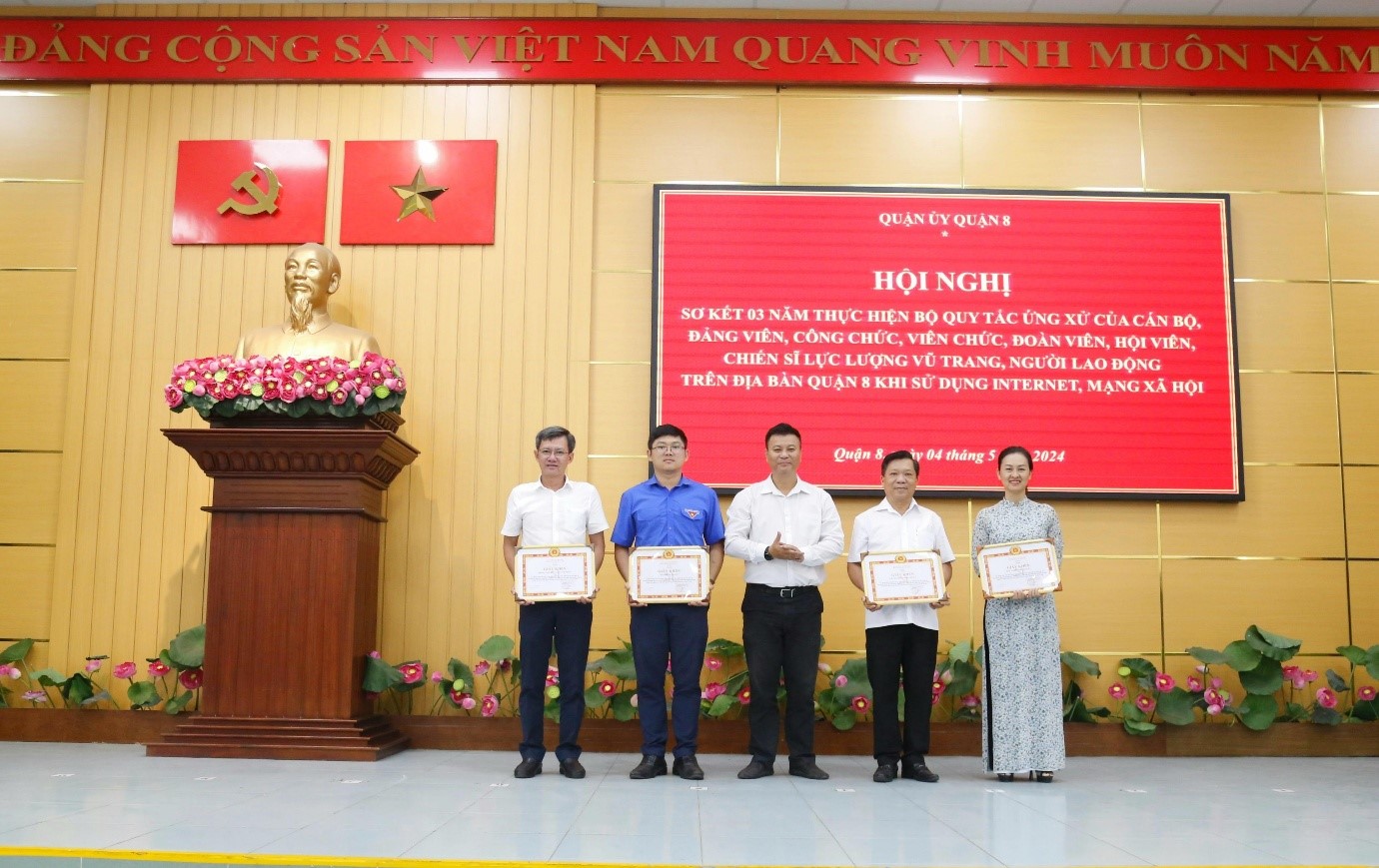 Nhân dịp này quận đã ra mắt trang mạng xã hội facebook "Nhận diện sự thật", nhằm đấu tranh trước các luận điểm, quan điểm sai trái, xuyên tạc các thế lực thù địch, phản động. Bên cạnh đó, Quận ủy Quận 8 đã khen thưởng 04 tập thể và 03 cá nhân có thành tích trong việc triển khai thực hiện bộ quy tắc ứng xử của cán bộ, đảng viên, công chức, viên chức, đoàn viên, hội viên, chiến sĩ lực lượng vũ trang, người lao động trên địa bàn quận khi sử dụng internet, mạng xã hội.
