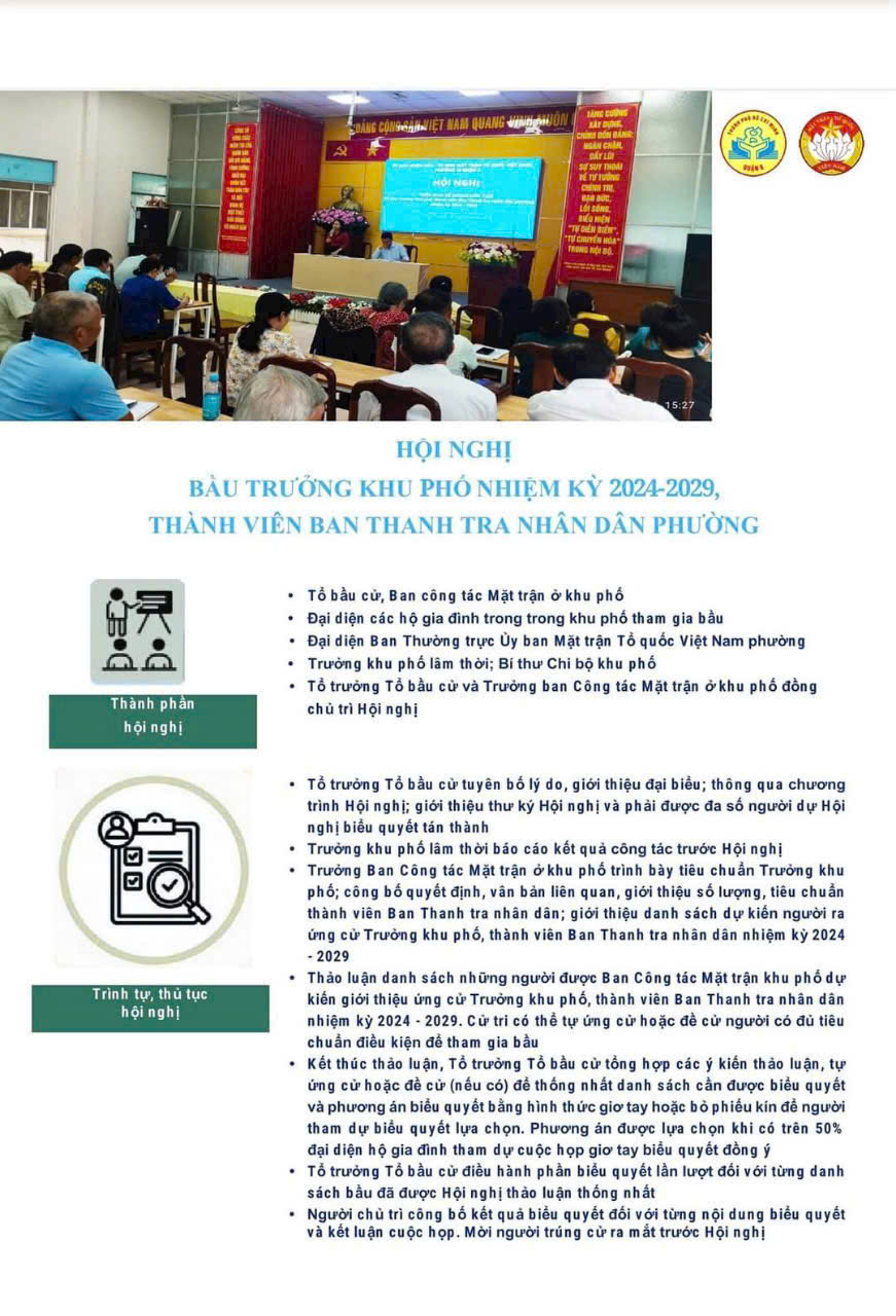 CẨM NANG HƯỚNG DẪN BẦU TRƯỞNG KHU PHỐ NHIỆM KỲ 2024 - 2029, THÀNH VIÊN BAN THANH TRA NHÂN DÂN PHƯỜNG