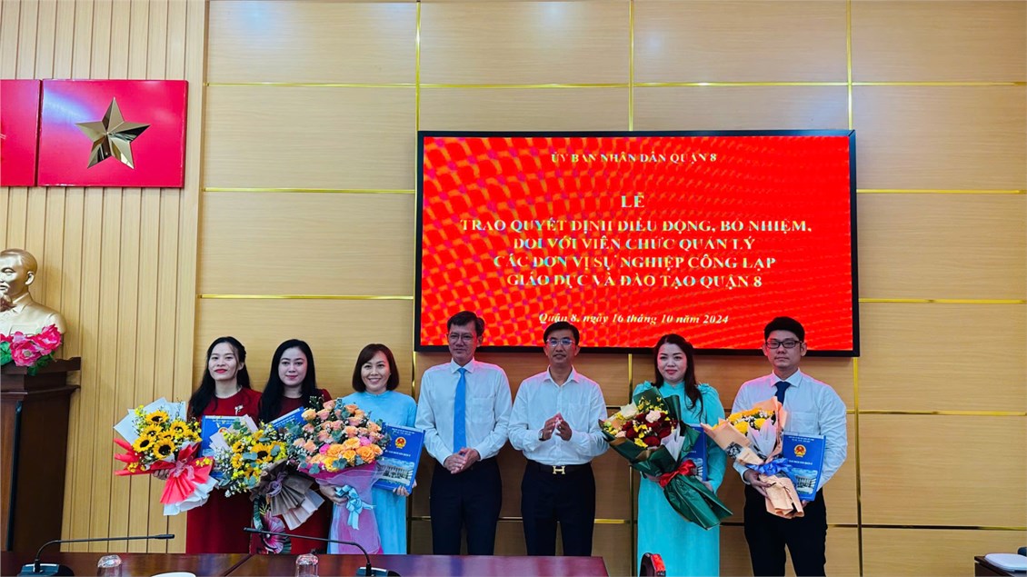 Sáng ngày 16 tháng 10 năm 2024, Lễ trao Quyết định điều động, bổ nhiệm viên chức quản lý khối Giáo dục và Đào tạo tại trụ sở Ủy ban nhân dân Quận 8