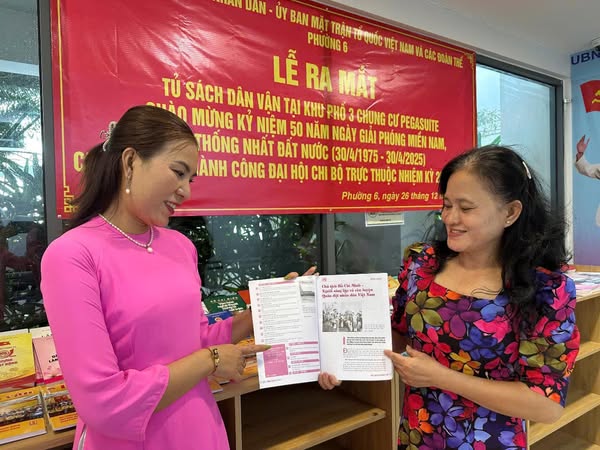 Nhằm triển khai thực hiện công trình chào mừng kỷ niệm 50 năm ngày giải phóng miền Nam, thống nhất đất nước (30/4/1975 - 30/4/2025) của Ban Dân vận Quận ủy và Chương trình công tác Dân vận năm 2024, ngày 26/12, Đảng ủy phường 6 tổ chức Lễ trao tặng công trình “Tủ sách Dân vận” tại Chung cư Pegasuite.