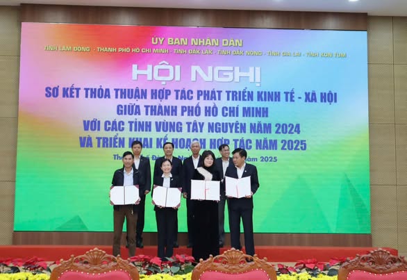 Từ ngày 02/01/2025 đến ngày 03/01/2025, Ủy ban nhân dân TPHCM và Ủy ban nhân dân các tỉnh vùng Tây Nguyên (tỉnh Lâm Đồng, tỉnh Đắk Lắk, tỉnh Đắk Nông, tỉnh Gia Lai, tỉnh Kon Tum) đã tổ chức Hội nghị tổng kết Thỏa thuận hợp tác phát triển kinh tế - xã hội giữa Thành phố Hồ Chí Minh với các tỉnh vùng Tây Nguyên năm 2024 và triển khai kế hoạch hợp tác năm 2025.