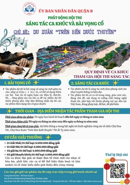 - Hội thi sáng tác Ca khúc và Bài Vọng cổ với chủ đề “Du Xuân - Trên bến dưới thuyền,” là sân chơi sáng tạo cho những người yêu nghệ thuật âm nhạc dân gian.