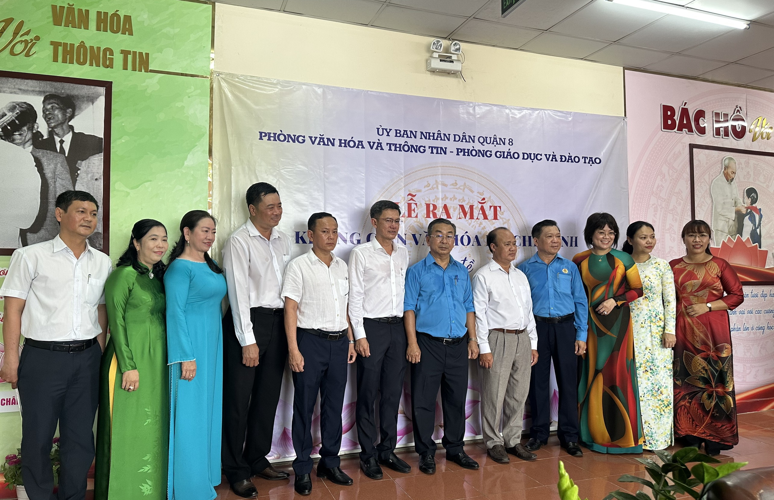 Thực hiện Kế hoạch số 252/KH-UBND ngày 17 tháng 8 năm 2022 của Ủy ban nhân dân Quận 8 về triển khai thực hiện xây dựng không gian văn hóa Hồ Chí Minh giai đoạn 2022 - 2025 trên địa bàn Quận 8; Kế hoạch số 12/KH-UBND ngày 11 tháng 01 năm 2023 của Ủy ban nhân dân Quận 8 về tổ chức Hội thi trang trí và trưng bày hiện vật, tài liệu liên quan đến cuộc đời và sự nghiệp của Chủ tịch Hồ Chí Minh tại trụ sở các cơ quan hành chính, đơn vị sự nghiệp trên địa bàn Quận 8. Sáng ngày 03 tháng 4 năm 2023, Phòng Giáo dục và Đào tạo phối hợp Phòng Văn hóa – Thông tin ra mắt Không giang văn hóa Hồ Chí Minh với chủ đề “Bác Hồ với Văn hóa – Thông tin và Giáo dục”