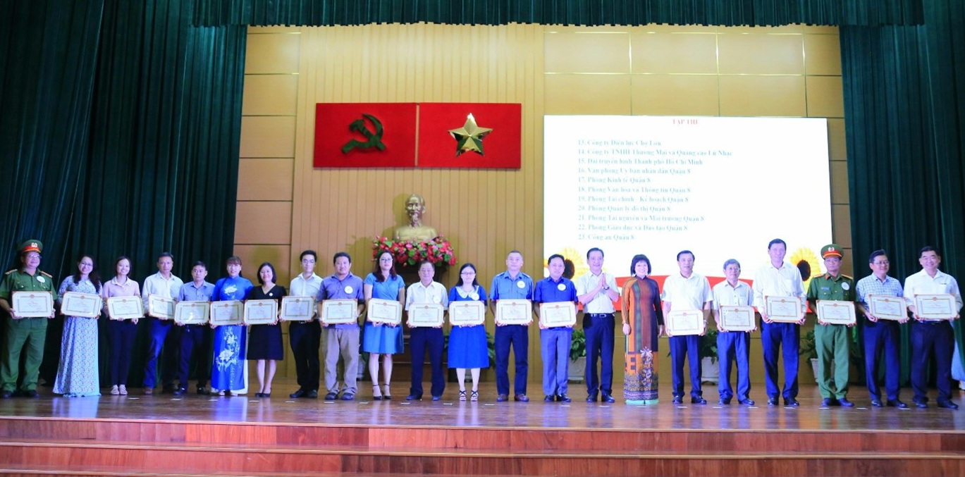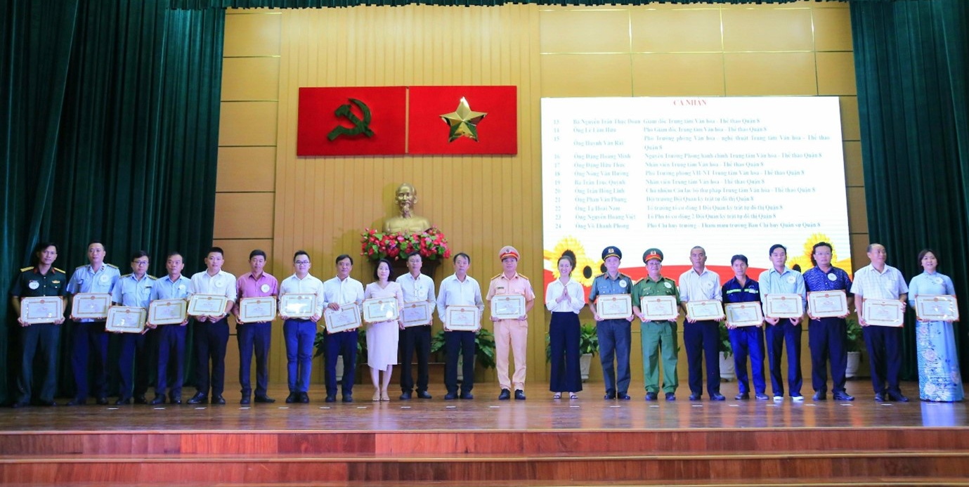 Dịp này, Quận 8 đã trao tặng giấy khen cho 46 tập thể và 94 cá nhân có thành tích xuất sắc trong hoạt động Chợ hoa xuân năm 2023; 03 tập thể và 09 cá nhân đã có thành tích xuất sắc trong công tác tổ chức Liên hoan Ảnh nghệ thuật. Đồng thời, trao giấy khen cho các tác phẩm đạt giải trong hội thi ảnh lần thứ 10 năm 2023 gồm: 02 giải Nhất, 02 giải Nhì, 02 giải Ba, 10 giải Khuyến khích, tác giả lớn tuổi nhất và tác giả nhỏ tuổi nhất.