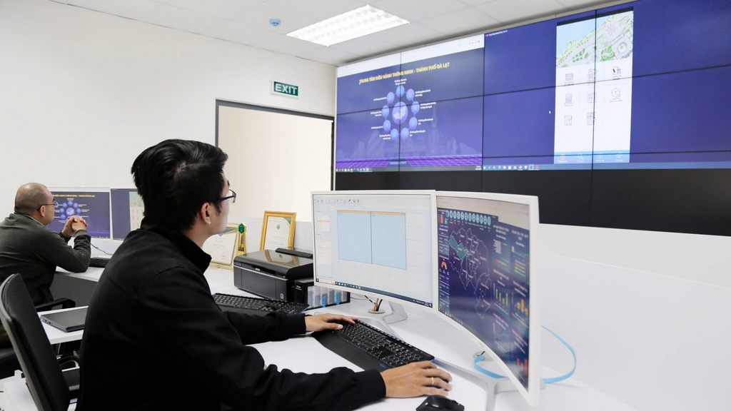 Đặc biệt, Đoàn công tác đã được tham quan Trung tâm điều hành thông minh Thành phố Đà Lạt (IOC), tích hợp hệ thống camera tầm cao với 38 camera, giám sát công tác trật tự đô thị, bảo vệ rừng. Đồng thời, đang thí điểm tích hợp hệ thống trí tuệ nhân tạo vào camera tầm cao, từ đó đưa ra những cảnh báo trong thời gian thực về báo cháy, trật tự đô thị. Trung tâm điều hành IOC được Thành phố Đà Lạt chính thức đưa vào hoạt động từ tháng 12/2019 với mục tiêu cung cấp thông tin toàn diện các choạt động đang diễn ra trên địa bàn thành phố. Với khả năng giám sát và quản lý từ tổng thể đến chi tiết từng tình huống như các chỉ tiêu đánh giá về tình hình kinh tế - xã hội, giám sát trực quan trên bản đồ số, tình hình chất lượng dịch vụ y tế, xử lý phản ánh về bất cập đô thị, camera trí tuệ nhân tạo giám sát đô thị trực tiếp, quản lý thủ tục cấp phép xây dựng, tình hình thực hiện văn bản chỉ đạo, điều hành và giải quyết dịch vụ hành chính công... Trong thời gian vận hành thử nghiệm, hệ thống camera tầm cao đã phát hiện, cung cấp thông tin 1.297 vụ việc cho các cơ quan, đơn vị xử lý.
