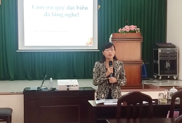 Bà Phan Kiều Thanh Hương –Quận ủy viên –Phó Chủ tịch Ủy Ban nhân dân Quận 8 phát biểu tại hội nghị
