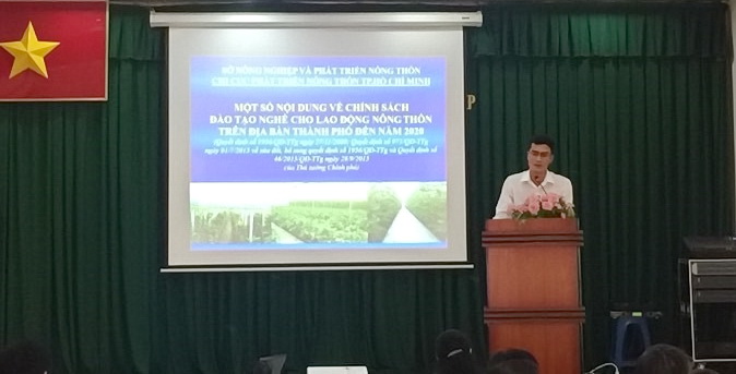 Ông Vũ Xuân Dũng –Trưởng Phòng chính sách phát triển - Chi cục phát triển nông thôn thành phố triển khai chính sách Đào tạo nghề nông nghiệp cho lao động nông thôn trên địa bàn thành phố đến năm 2020