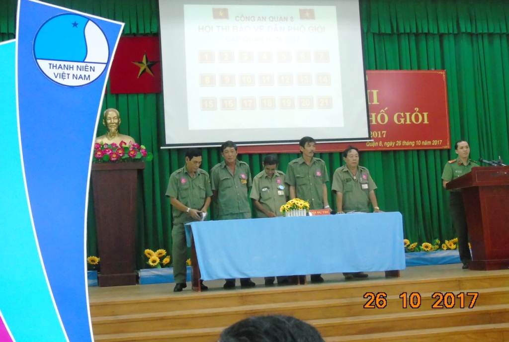 Thực hiện chỉ đạo của Công an thành phố tổ chức Hội thi Bảo vệ dân phố giỏi cấp quận năm 2017, đến với hội thi có 16 đội đại diện 16 Ban Bảo vệ dân phố tham gia hội thi, các đội thi tham gia với tinh thần học hỏi, trao đổi kinh nghiệm trong công tác, phát huy tinh thần nhiệt huyết, thi đua sôi nổi. Ban Giám khảo chấm điểm, đánh giá một cách khách quan, phản ánh đúng tình hình thực tế của lực lượng Bảo vệ dân phố trên địa bàn Quận 8.
