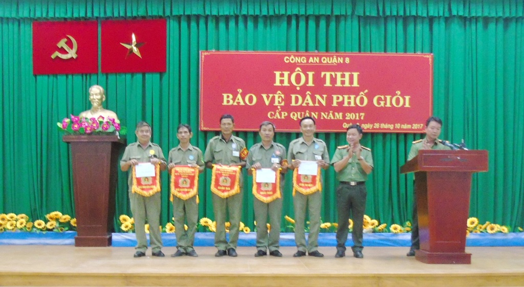 Kết quả Hội thi, Công an Quận 8 đã trao thưởng đối với 05 tập thể gồm: Giải nhất Ban Bảo vệ dân phố Phường1 Quận 8; giải Nhì Ban Bảo vệ dân phố Phường 15 Quận 8, Giải Ba Ban Bảo vệ dân phố Phường 7 Quận 8, Hai giải khuyến khích Ban Bảo vệ dân phố Phường 8, 9 Quận 8, ngoài ra trao 05 cá nhân đoạt giải Nhất, giải Nhì, giải Ba và 02 giải Khuyến khích của Hội thi “Bảo vệ dân phố giỏi” năm 2017. Qua hội thi lực lượng Bảo vệ dân phố tăng cường học tập, nắm vững kiến thức pháp luật, nâng cao kiến thức nghiệp vụ cũng như trao đổi kinh nghiệm thực tiễn góp phần hoàn thành tốt nhiệm vụ giữ gìn an ninh trật tự trên địa bàn Quận 8.