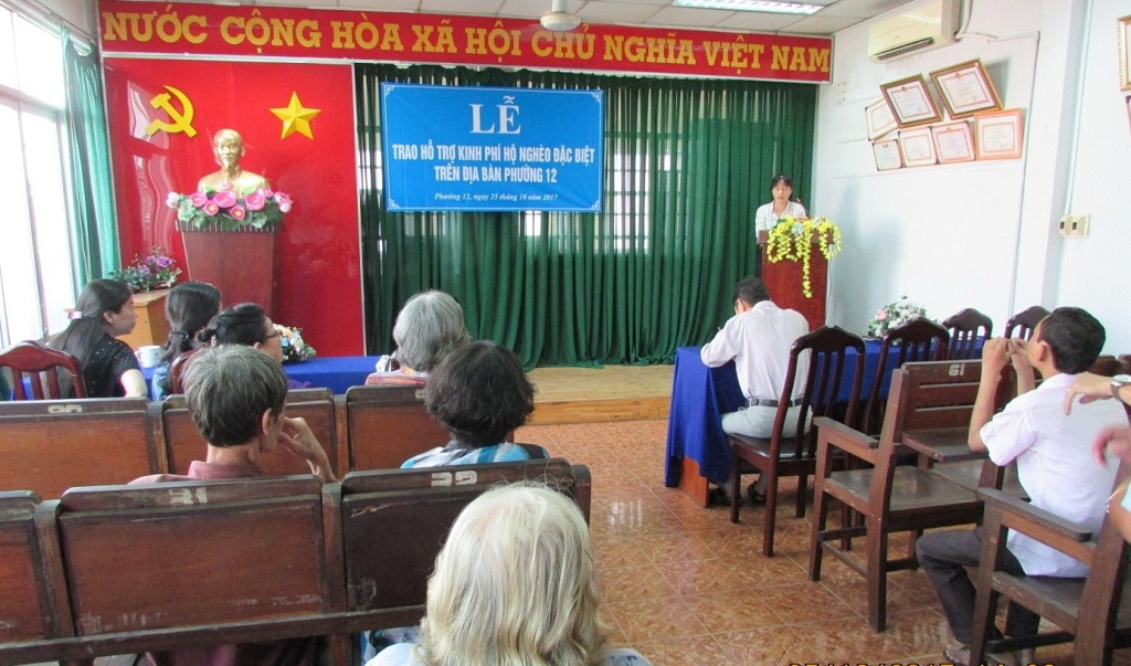 Nhằm phát huy tinh thần trách nhiệm, thể hiện tốt vai trò giám sát của Ủy ban Mặt trận Tổ quốc phường, góp phần thực hiện tốt công tác giảm hộ nghèo. Được sự chỉ đạo của Thường trực Đảng ủy phường, vào lúc 14 giờ ngày 25 tháng 10 năm 2017, Ủy ban Mặt trận Tổ quốc Việt Nam phối hợp cùng Ủy ban nhân dân Phường tổ chức lễ trao hỗ trợ kinh phí hộ nghèo đặc biệt trên địa bàn.