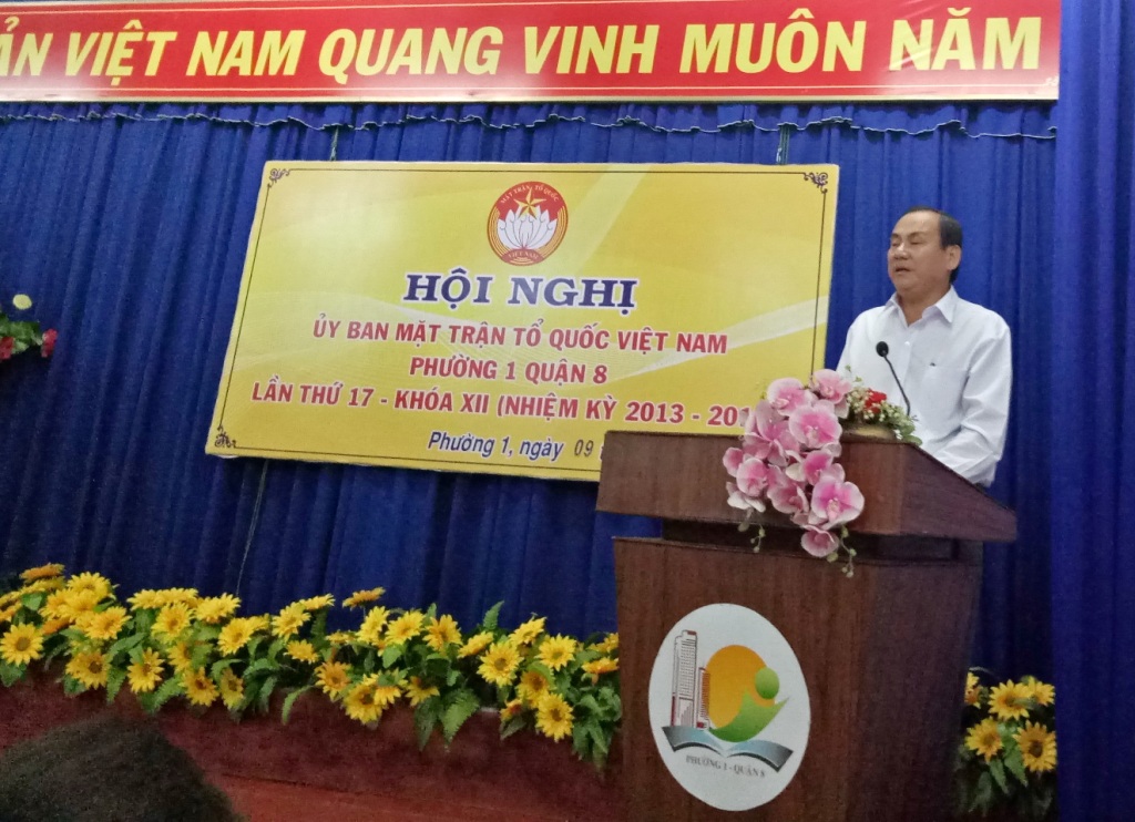 Hội nghị đã nhận được sự chỉ đạo chân tình của ông Mai Hồng Phong – Phó chủ tịch Uỷ ban Mặt trận Tổ quốc Việt Nam Quận 8 và phát biểu chỉ đạo của ông Nguyễn Văn Đại – Phó bí thư Thường trực Đảng ủy phường.