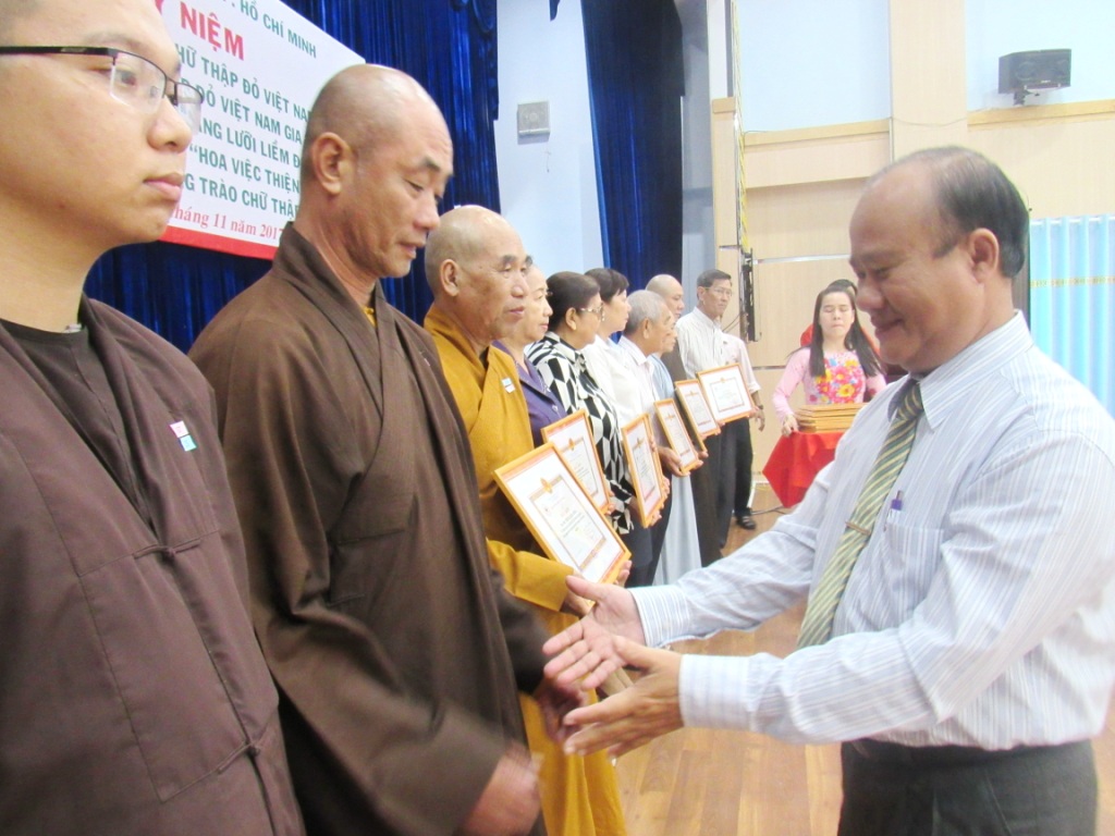 Lãnh đạo thành phố và quận trao tặng giấy khen và quà cho cá nhân được tuyên dương Gương điển hình “Hoa việc thiện” năm 2017