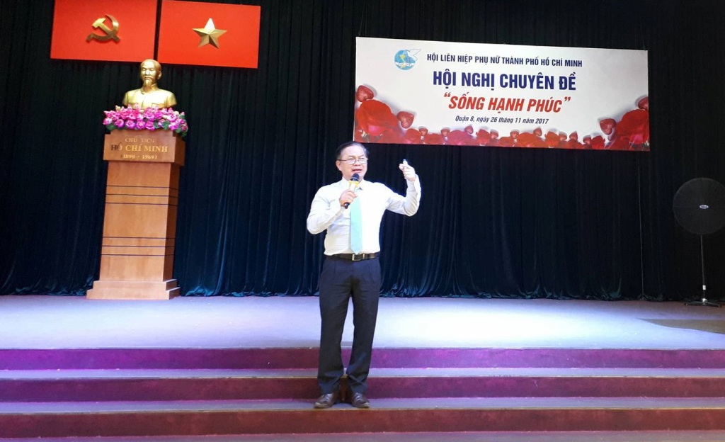 Thạc sĩ Hà Trung Thành – Giảng viên Trường Học Viện cán bộ Thành Phố - báo cáo Chuyên đề về “Sống hạnh phúc” trong nữ thanh niên.