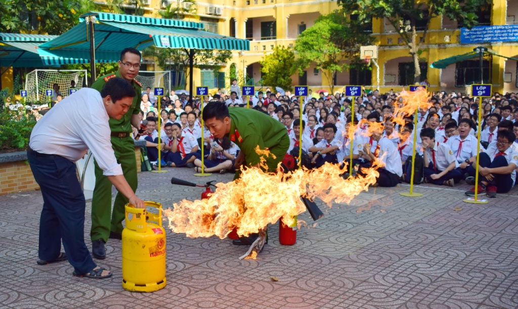 Trưa ngày 21/11/2017, do chập điện từ chiếc quạt đảo nên lửa lan vào nệm giường trong một phòng thuộc khu nội trú Trường THCS - THPT Nhân Văn – Tân Phú. Nhờ được trang bị kỹ năng PC&CC nên học sinh rất nghiêm túc, trật tự nhanh chóng di chuyển xuống sân theo thứ tự mà không có sự chen lấn, xô đẩy, dẫm đạp, reo hò. Xuống đến sân, học sinh tự giác tập trung hai bên sân trường nhường đường cho xe chữa cháy vào làm nhiệm vụ. Các em không chỉ bảo vệ bản thân mình mà còn hỗ trợ, giúp đỡ thầy cô và phối hợp xử lý sự cố.