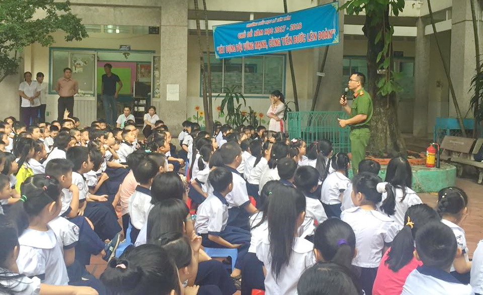 Giáo viên, học sinh Trường tiểu học Lê Văn Tám – Quận 5 sinh hoạt chuyên để về PC&CC trong lễ chào cờ sáng thứ 2 đầu tuần