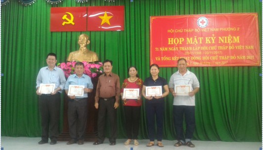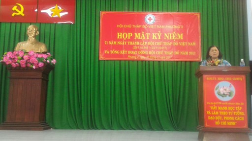 Trải qua 71 năm xây dựng và trưởng thành, công tác Hội Chữ Thập đỏ có những chuyển biến tích cực; vị trí, vai trò của Hội từng bước được khẳng định; số lượng và chất lượng cán bộ, hội viên, thanh thiếu niên, tình nguyện viên Hội Chữ Thập đỏ từng bước được nâng lên; hoạt động hợp tác quốc tế của Hội được mở rộng; công tác vận động nguồn lực và trợ giúp đối tượng ngày càng có hiệu quả; công tác tham mưu với Đảng, Nhà nước lãnh đạo, chỉ đạo công tác nhân đạo có nhiều kết quả rõ rệt. Với ý nghĩa đó, sáng ngày 30/11/2017, tại Hội trường Ủy ban nhân dân Phường 2, Hội Chữ Thập đỏ Phường 2 tổ chức họp mặt kỷ niệm 71 năm ngày thành lập Hội Chữ Thập đỏ Việt Nam (23/11/1946 - 23/11/2017) và tổng kết hoạt động Hội Chữ Thập đỏ năm 2017.