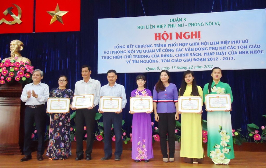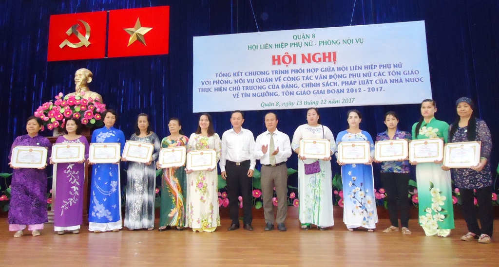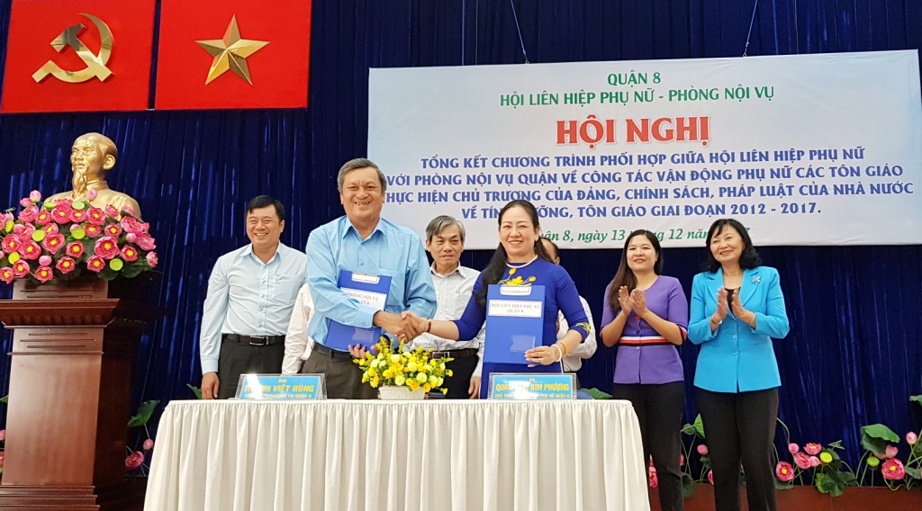 Sáng ngày 13/12/2017, Hội LHPN và Phòng Nội vụ Quận 8 phối hợp tổ chức Hội nghị Tổng kết 5 năm Chương trình phối hợp giữa Hội LHPN và Phòng Nội vụ Quận về vận động phụ nữ các tôn giáo thực hiện các chủ trương của Đảng, chính sách pháp luật của Nhà nước giai đoạn 2012 – 2017.