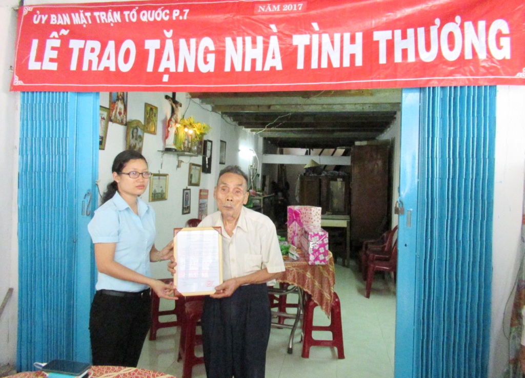 Nhằm chăm lo cho các hộ nghèo trên địa bàn phường trong năm 2017, sáng ngày 13 tháng 12 năm 2017 Ủy ban Mặt trận Tổ quốc – Ban vận động Vì người nghèo phường 7 tổ chức lễ bàn giao nhà tình thương cho hộ gia đình Ông Vũ Lập địa chỉ 3065/1 Phạm Thế Hiển Phường 7.