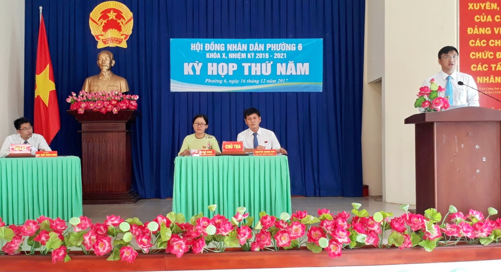 Sáng 16/12, Hội đồng nhân dân Phường 6 khóa X, nhiệm kỳ 2016 – 2021 đã tổ chức kỳ họp thứ năm. Tham dự kỳ họp có 29/30 đại biểu.
