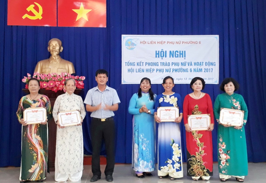 Lãnh đạo Quận, Phường trao giấy khen cho các tập thể, cá nhân có thành tích xuất sắc trong phong trào phụ nữ năm 2017.