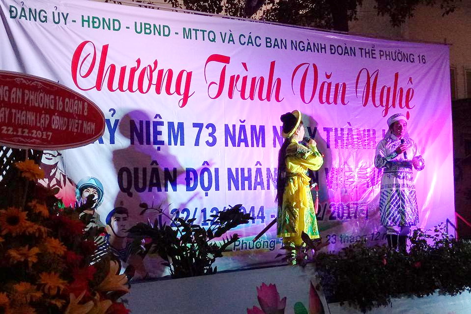 Ngày 23/12, tại trụ sở UBND, Đảng ủy, Hội đồng nhân dân, Ủy ban nhân dân, Ủy ban Mặt trận tổ quốc và các đoàn thể Phường 16 tổ chức chương trình giao lưu văn nghệ chào mừng kỷ niệm 73 năm Ngày thành lập Quân đội nhân dân Việt Nam (22/12/1944 - 22/12/2017) và 28 năm Ngày hội Quốc phòng toàn dân (22/12/1989 - 22/12/2017). Tới dự hội nghị có ông Mai Thanh Xuân, Chính trị viên Ban Chỉ huy Quân sự Quận 8; bà Phạm Thúy Hằng, Phó Trưởng ban đại diện Hội Người cao tuổi Quận 8; bà Huỳnh Thị Anh Minh, Phó Bí thư Thường trực Đảng ủy, Chủ tịch Hội đồng nhân dân; bà Bùi Thị Bích Tuyền, Phó Chủ tịch Ủy ban nhân dân; ông Trương Hồng Sơn, Đảng ủy viên, Chủ tịch Ủy ban Mặt trận Tổ quốc Việt Nam Phường 16; đại diện các ban ngành, đoàn thể phường, cấp ủy, ban điều hành, ban công tác mặt trận khu phố; sự hiện diện của đông đảo cán bộ, hội viên Hội Cựu chiến binh, Câu lạc bộ Cựu quân nhân phường.