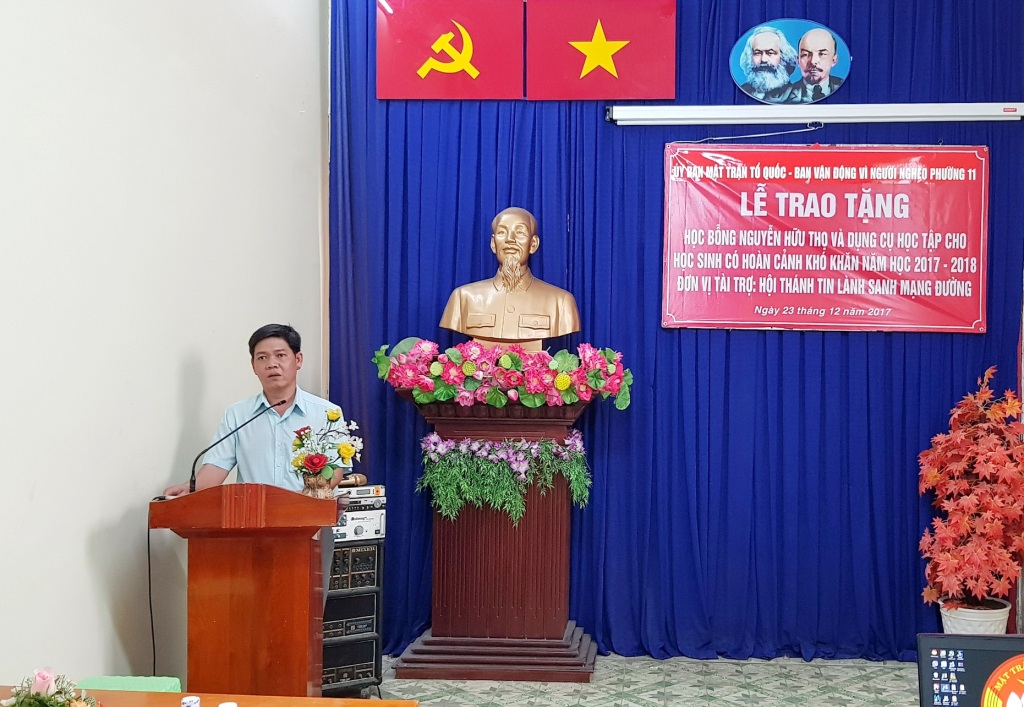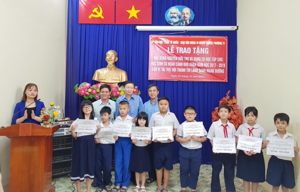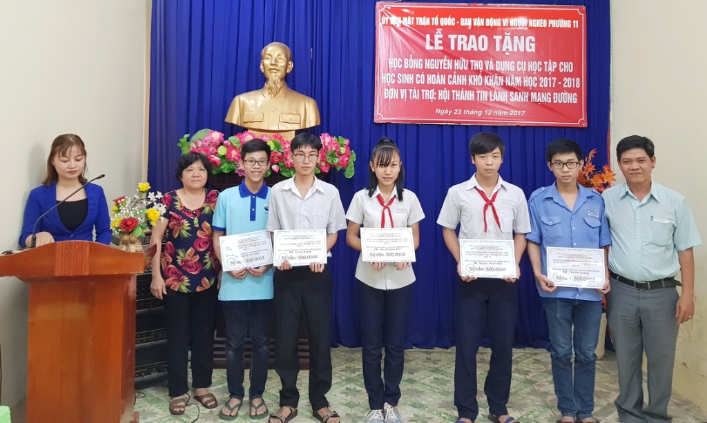 Chiều ngày 23 tháng 12 năm 2017, tại hội trường Ủy ban nhân dân phường 11, Ủy ban Mặt trận Tổ quốc Việt Nam Phường 11 đã tổ chức lễ trao tặng học bổng Nguyễn Hữu Thọ và dụng cụ học tập cho học sinh có hoàn cảnh khó khăn năm học 2017 – 2018, do Hội thánh Sanh Mạng Đường tài trợ.