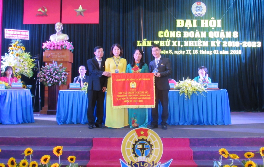 Trong hai ngày 17 và 18/1, Liên đoàn Lao động Quận 8 đã tổ chức Đại hội Công đoàn Quận 8 lần thứ XI, nhiệm kỳ 2018 - 2023. Đến dự có các đồng chí: Trần Kim Yến, Thành ủy viên, Chủ tịch Liên đoàn Lao động thành phố; Ngô Thành Tuấn, Bí thư Quận ủy, Chủ tịch HĐND Quận 8; Ủy viên ban Thường vụ Quận ủy; lãnh đạo các ban, ngành, đoàn thể cùng 183 đại biểu, đại diện cho 17.873 Đoàn viên công đoàn Quận 8.